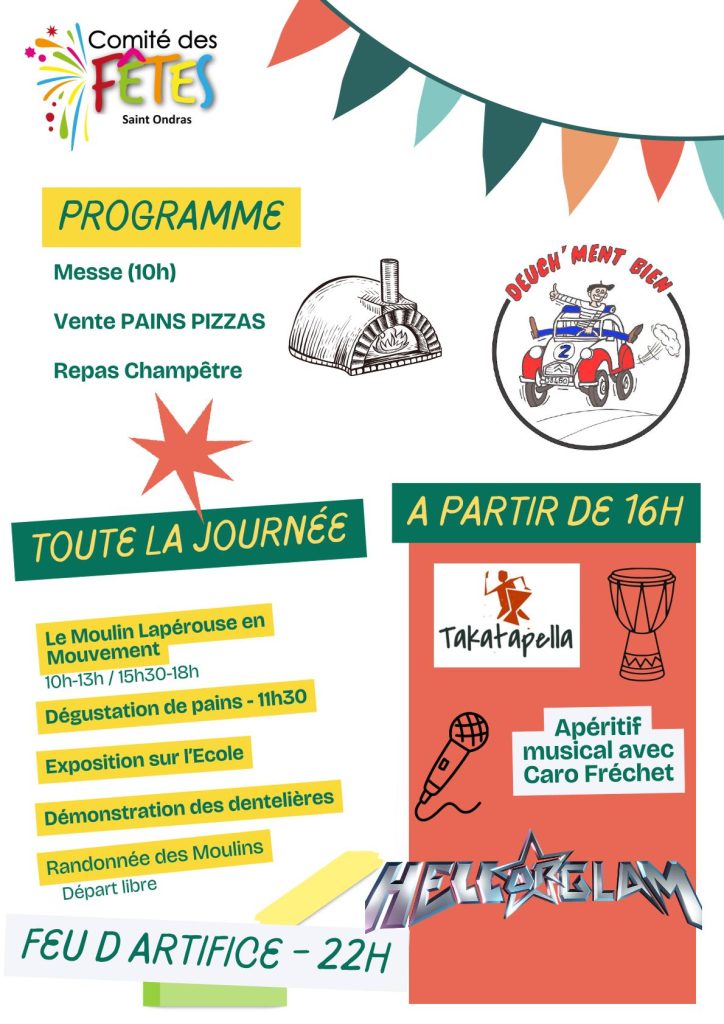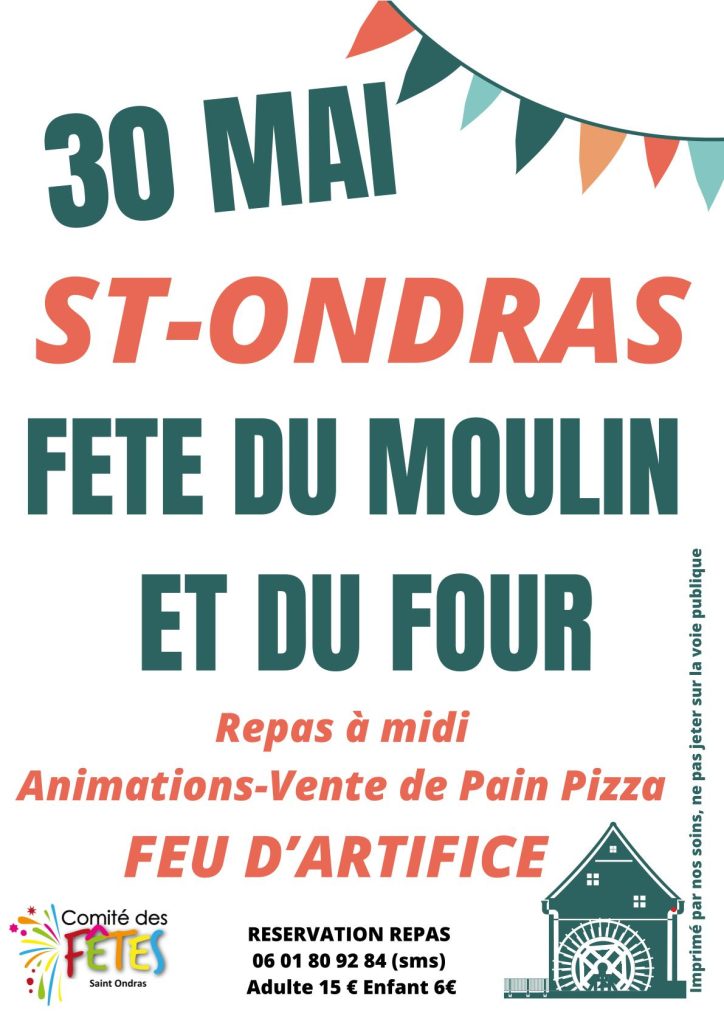 Le comité des fêtes de Saint-Ondras organise la traditionnelle fête de son four et de son moulin. Elle aura lieu le 30 mai 2026.