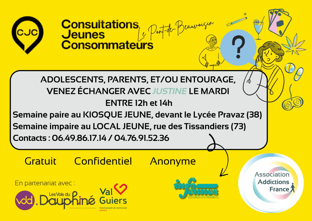 L’association Addiction France reprend ses permanences sur notre secteur toute les semaines paires entre 12h et 14h à PONT DE BEAUVOISIN (38).