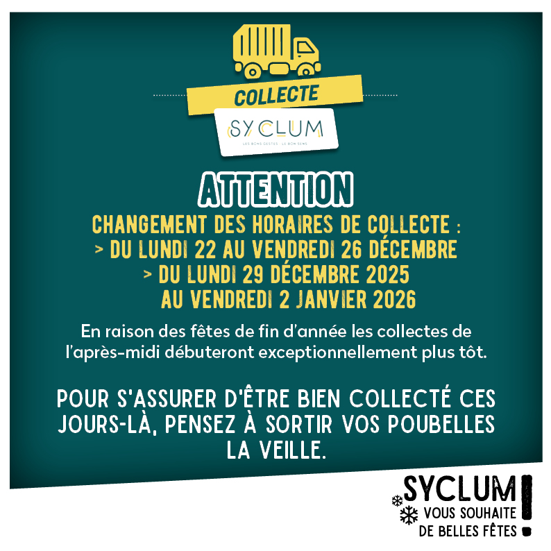 SYCLUM Fin d’année❗Changement horaires communes collectées l’après-midi ❗